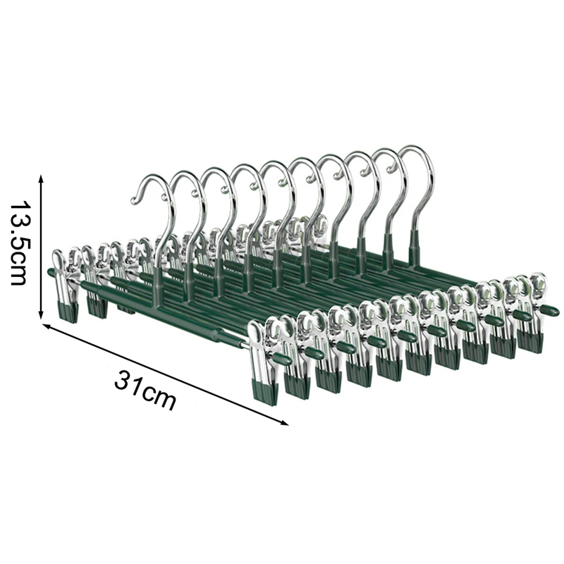Περιεχόμενα συσκευασίας: 10x πράσινη κρεμάστρα για παντελόνια με καρφίτσες.