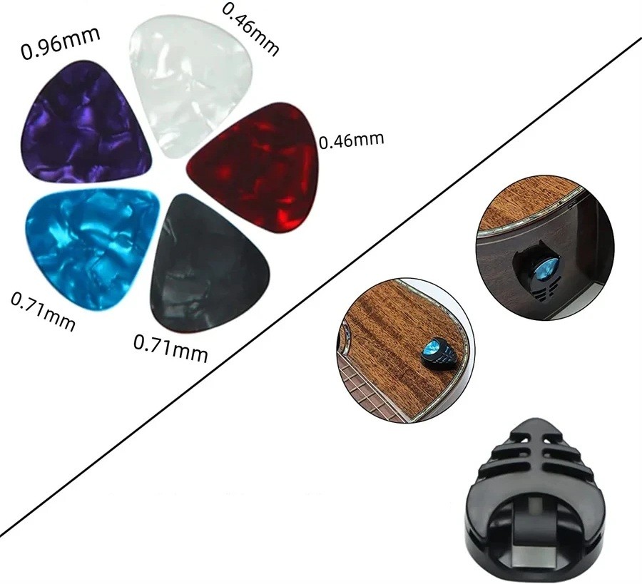 • Αντάπτορας για κεφαλή κιθάρας και θήκη για πενάκια για εύκολη χρήση