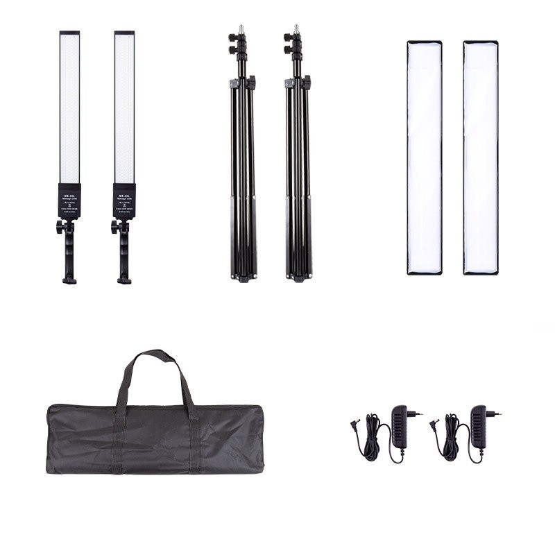 Περιεχόμενα συσκευασίας: 2x φως, 2x τρίποδο, 2x θήκη για φως, 1x θήκη, 2x φορτιστής προσαρμογέα
