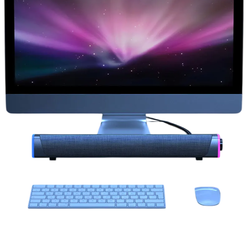 Ισχυρό 4D υπολογιστής ηχείο με υπογούφερ για PC, MacBook και φορητό υπολογιστή, με Bluetooth 5.0, λειτουργία παιχνιδιού, στερεοφωνικό ήχο και εισόδους AUX/USB. Πλήρης περιγραφή