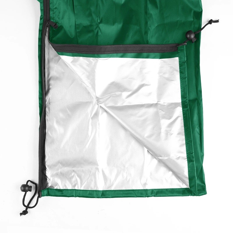 Το κάλυμμα είναι επικαλυμμένο με οικολογική PU στρώση, η οποία αυξάνει την αδιαβροχοποίηση και την αντοχή στη ρύπανση, ενώ είναι φιλική προς το περιβάλλον. Το υλικό είναι ανθεκτικό, δεν ξεθωριάζει ούτε μετά από μακροχρόνια χρήση και έχει δοκιμαστεί για αντοχή στο σκίσιμο, στο νερό και στην UV ακτινοβολία. Περιλαμβάνει επίσης μια πρακτική τσάντα αποθήκευσης, που διευκολύνει την αποθήκευση της θήκης όταν δεν είναι απαραίτητη.