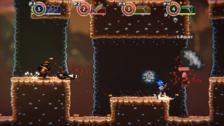 Το Anarkade είναι ένα παιχνίδι αρένας με πολλούς παίκτες με pixel γραφικά και έντονη πλατφορμική δράση.