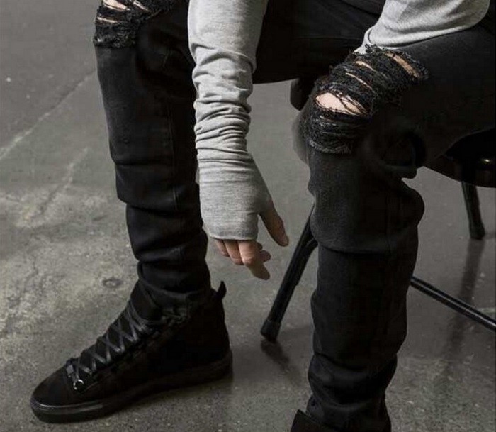 Ανδρικά στυλάτα τζιν σε σκισμένο σχέδιο, που ταιριάζουν με μια όμορφη ζώνη.