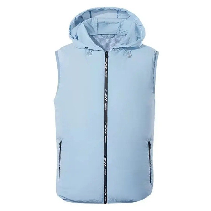 Ελαφρύ ανδρικό αθλητικό γιλέκο με κουκούλα και τσέπες, κατάλληλο για τρέξιμο, πεζοπορία και ελεύθερο χρόνο. Ανθεκτικό στον άνεμο και αδιάβροχο υλικό. Πλήρης περιγραφή