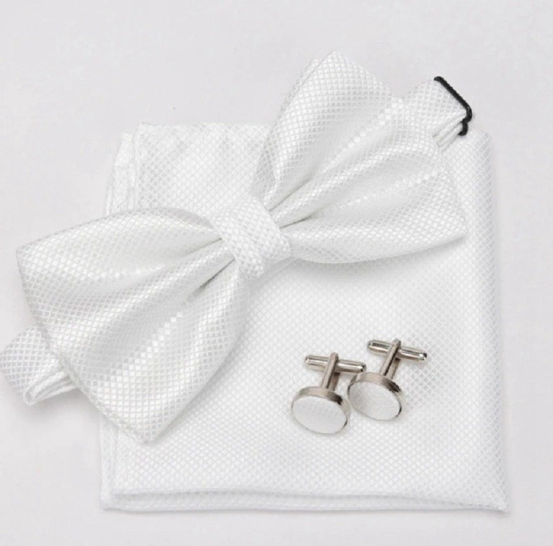 Περιεχόμενο συσκευασίας: 1x παπιγιόν, 1x μαντήλι, 2x κουμπί μανικιού