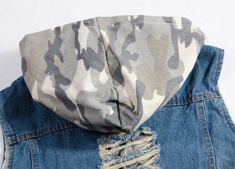 Φορέστε την αυτή την τζιν γιλέκο με βαμβακερή κουκούλα σε στρατιωτικό σχέδιο για την άνοιξη ή το φθινόπωρο.