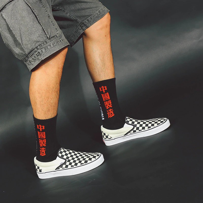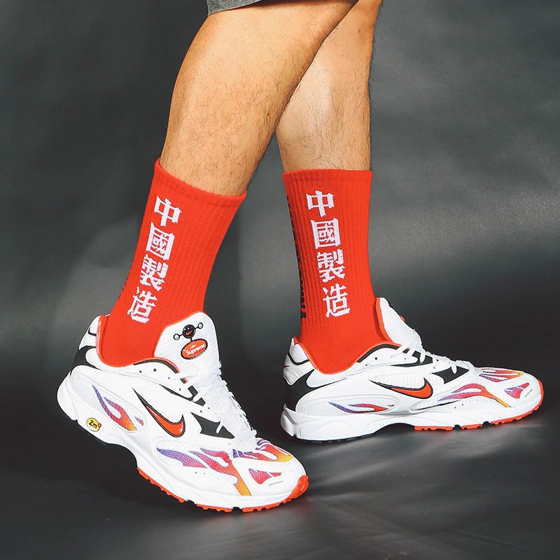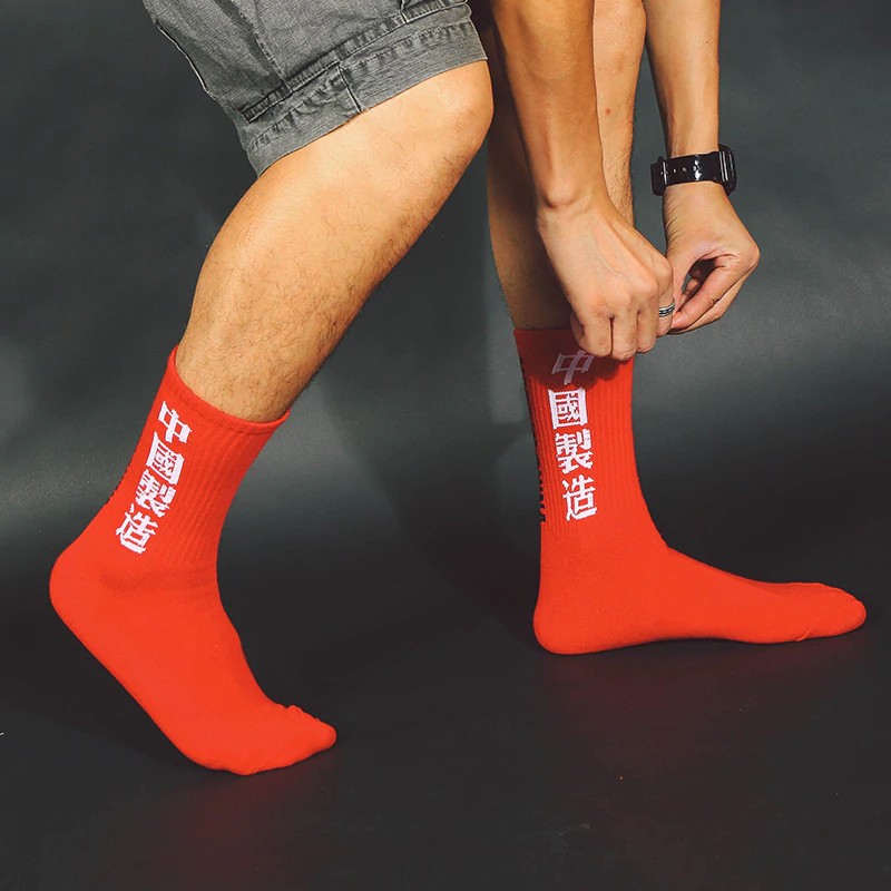 Αυτές οι κάλτσες με κινέζικους χαρακτήρες είναι πολύ άνετες και μοντέρνες.