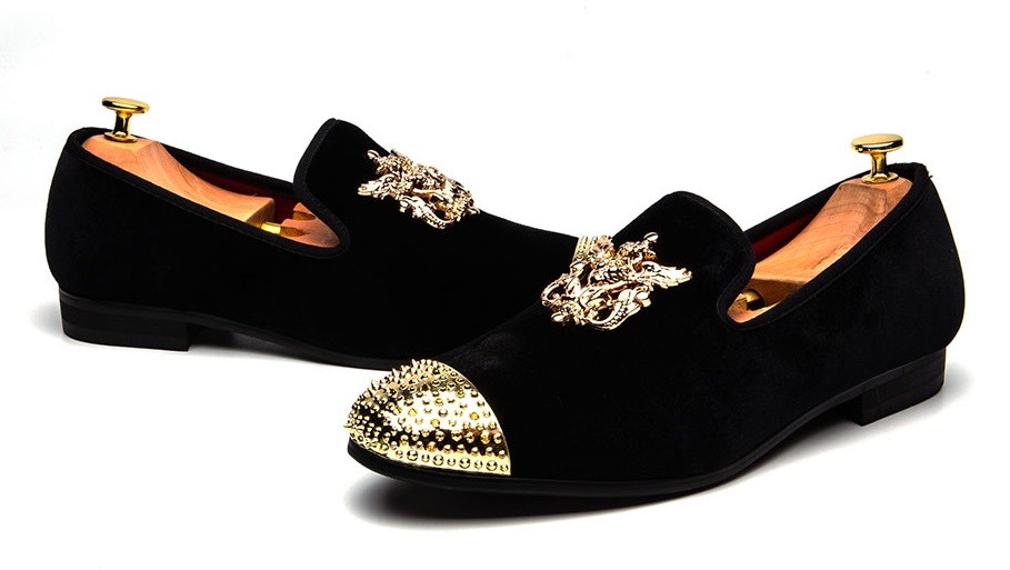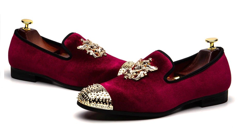 Ανδρικές μοκασίνες με διακοσμημένη μύτη που θα χρησιμοποιήσουν οι άνδρες που αγαπούν να πηγαίνουν σε κοινωνικές εκδηλώσεις και προτιμούν εκκεντρικά ρούχα.