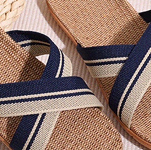 Οι παντόφλες έχουν λωρίδες από κάνναβη στο επάνω μέρος.