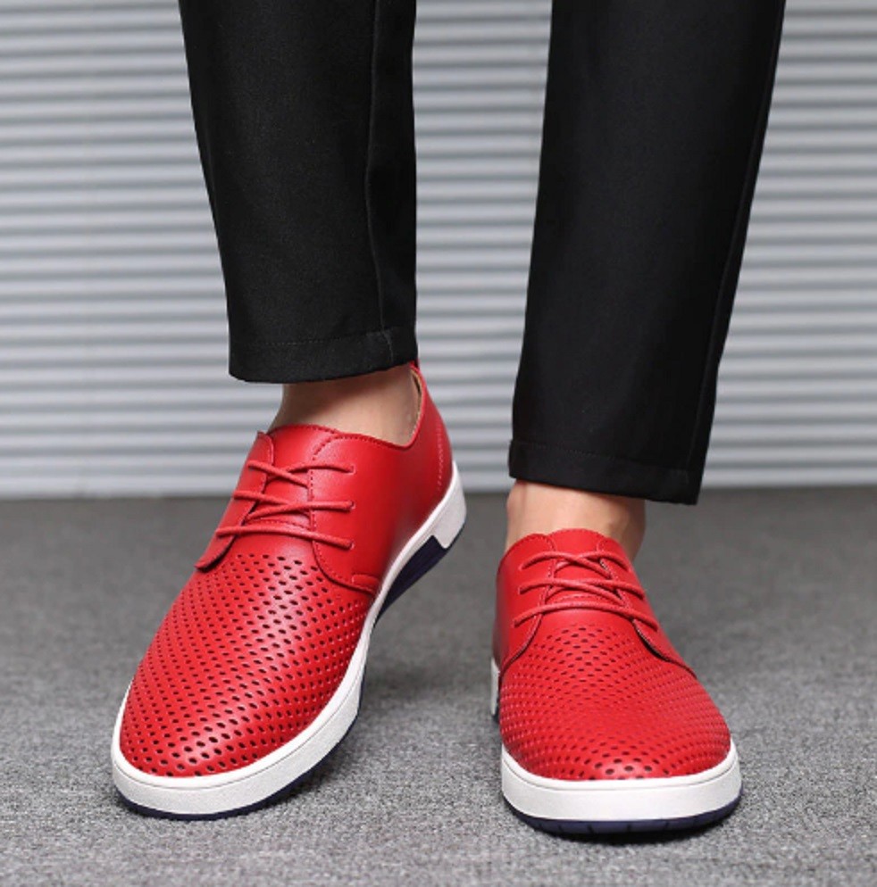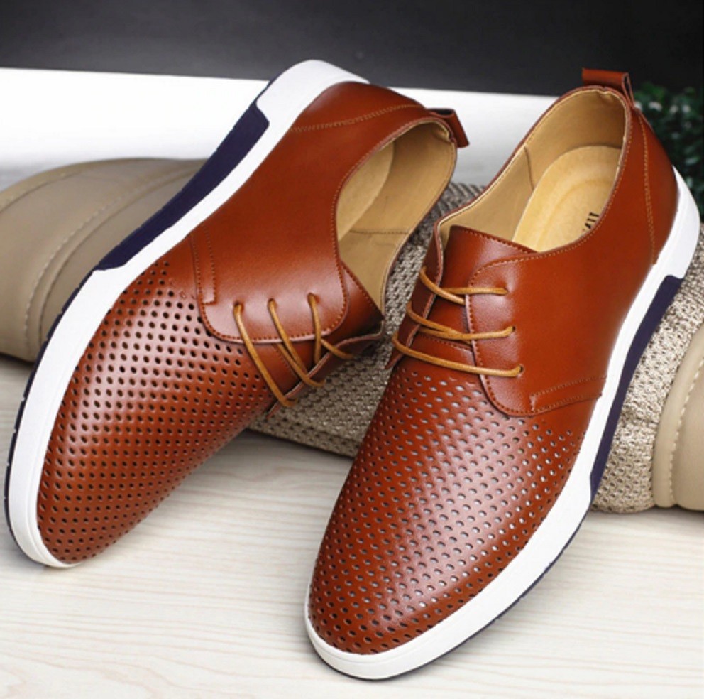 Ανδρικές πολυτελείς παπούτσια με μικρές τρύπες είναι πολύ αναπνεύσιμα, άνετα και κομψά.