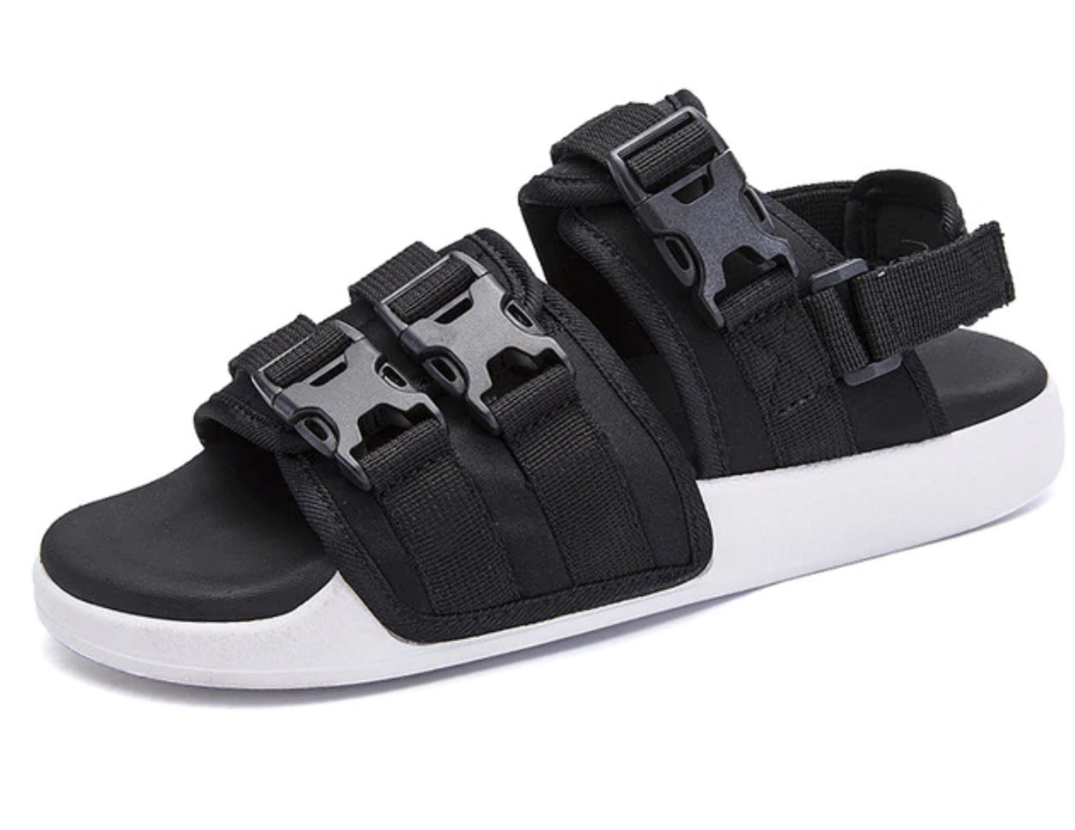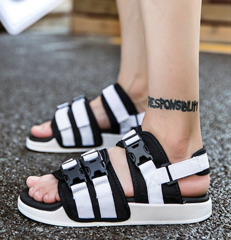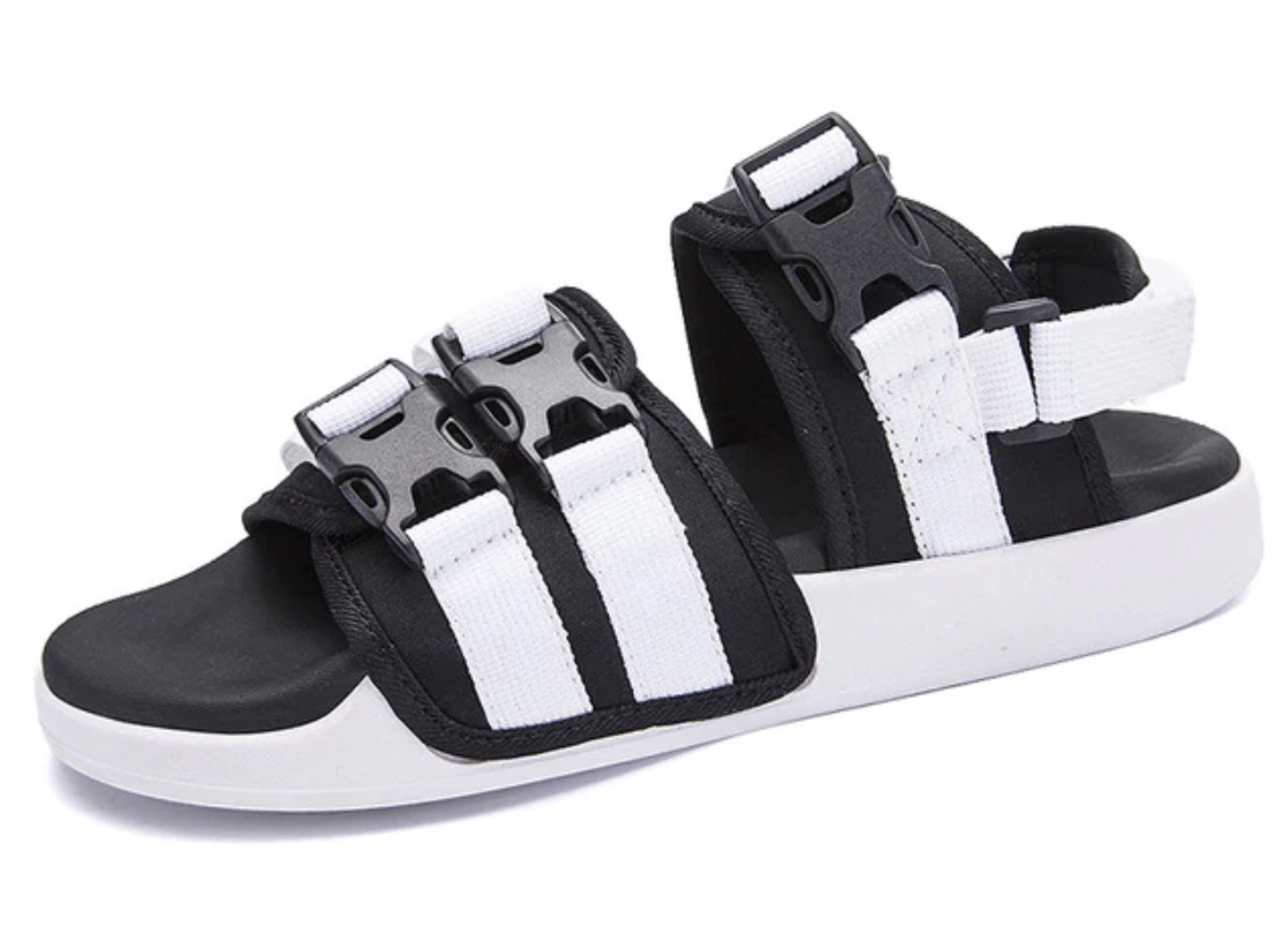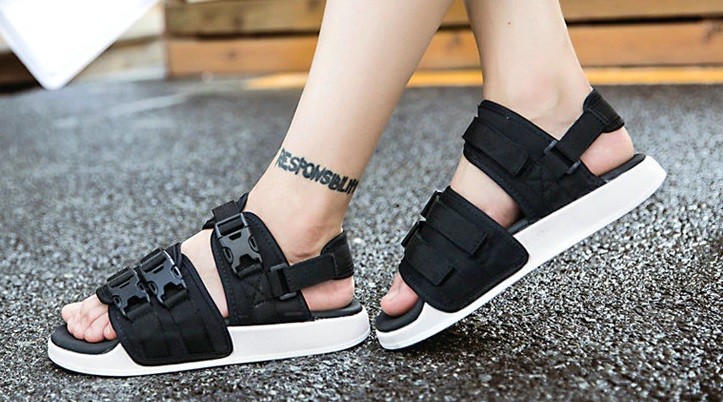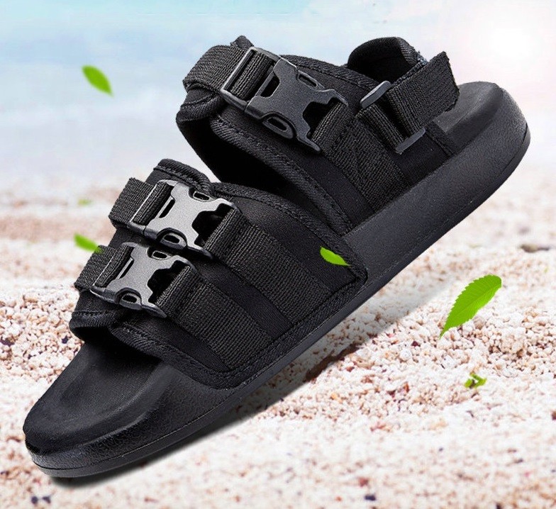 Ανδρικές σάντες με αγκράφες σε πλατφόρμα έχουν αποσπώμενη ζώνη πίσω από τη φτέρνα.