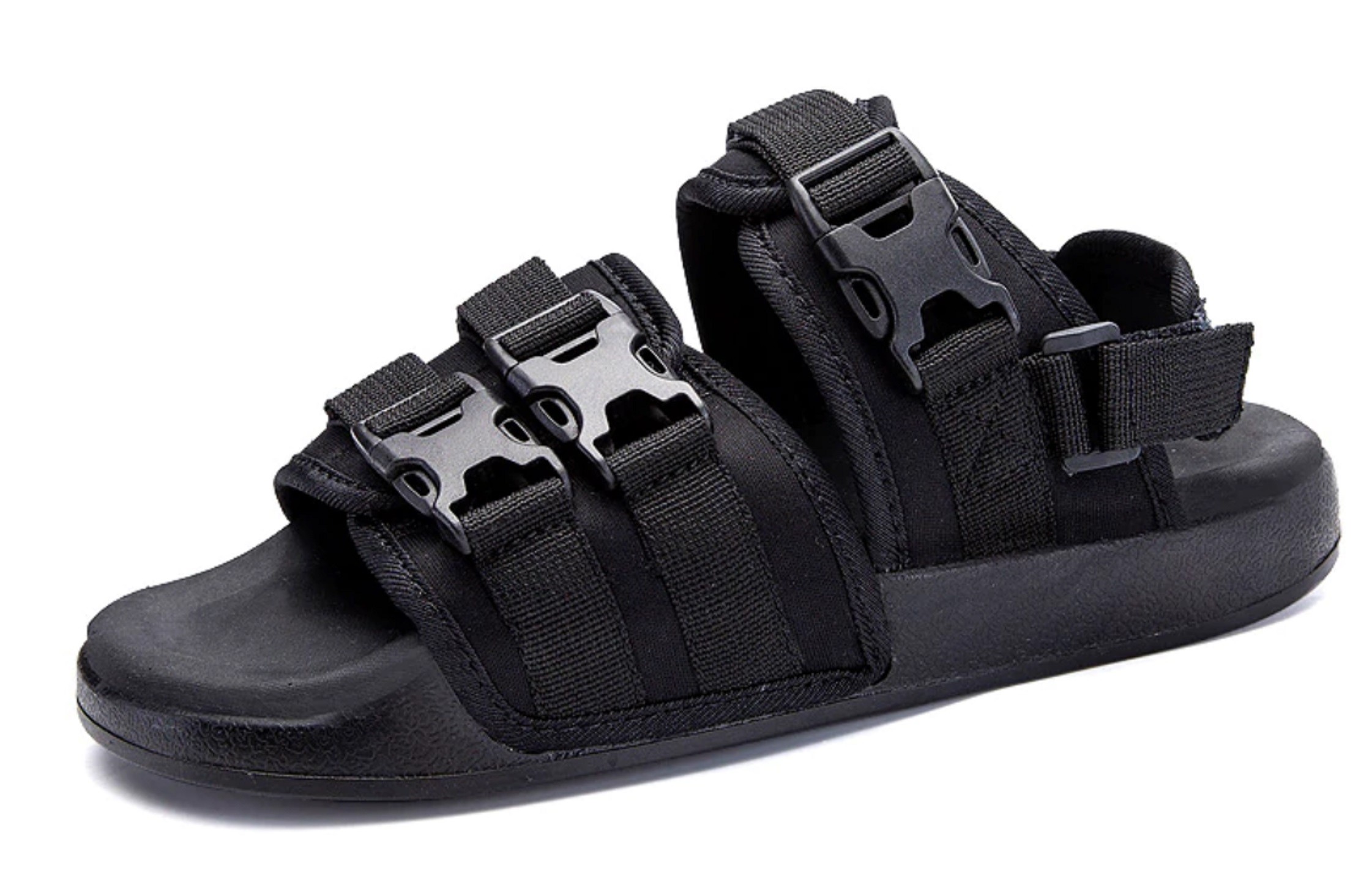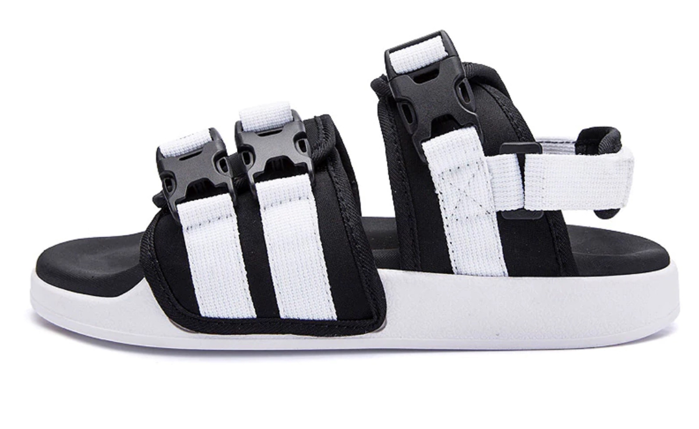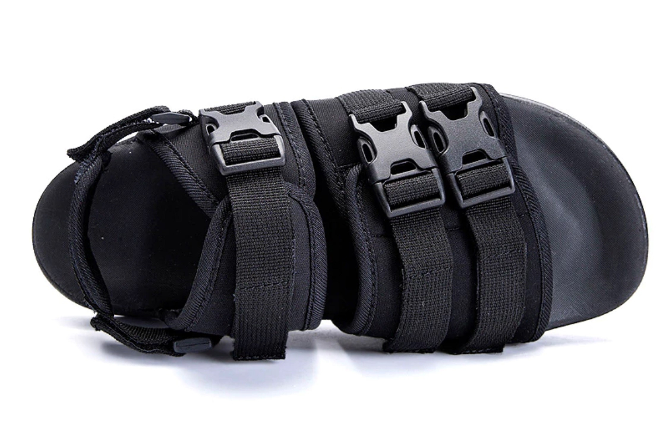 Ανδρικές σάντες με αγκράφες σε πλατφόρμα έχουν αποσπώμενη ζώνη πίσω από τη φτέρνα.
