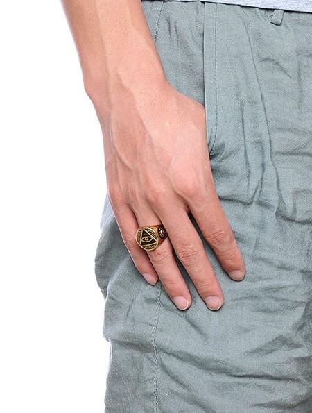 Αυτό το δαχτυλίδι είναι διακοσμημένο με το σύμβολο του Θεού μάτι σε τρίγωνο που είναι στολισμένο με ακτίνες.