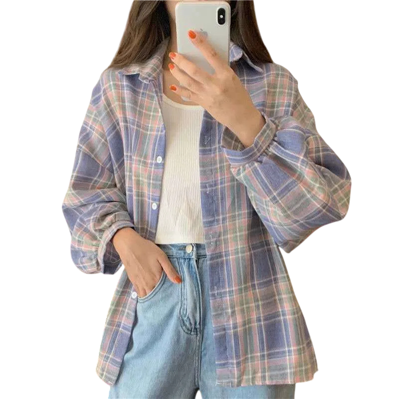 Αρχική σελίδα Αρχική σελίδα Ρούχα και Αξεσουάρ Γυναικεία ρούχα Γυναικεία πουκάμισα Γυναικεία καρό πουκάμισα Αριστοκρατική γυναικεία καρό πουκάμισο με γιακά Ελεύθερη γραμμή με κουμπιά Ελαφριά πολυεστερική μπλούζα για εργασία και ελεύθερο χρόνο