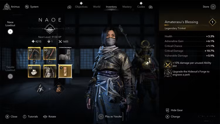 • Γίνετε ο Naoe, shinobi δολοφόνος, και ο Yasuke, θρυλικός σαμουράι, καθώς ζείτε τις συναρπαστικές τους ιστορίες και αποκτάτε τα συμπληρωματικά τους στυλ παιχνιδιού. Ως Naoe, χρησιμοποιήστε την κρυψίνοια για να αποφύγετε την αποκάλυψη και την ευκινησία για να μπερδέψετε τους εχθρούς σας. Ως Yasuke, χτυπήστε τους εχθρούς σας με θανατηφόρα ακρίβεια και δύναμη. Ξεκλειδώστε νέες ικανότητες, εξοπλισμό και πρόοδο ανεξάρτητα για κάθε χαρακτήρα.