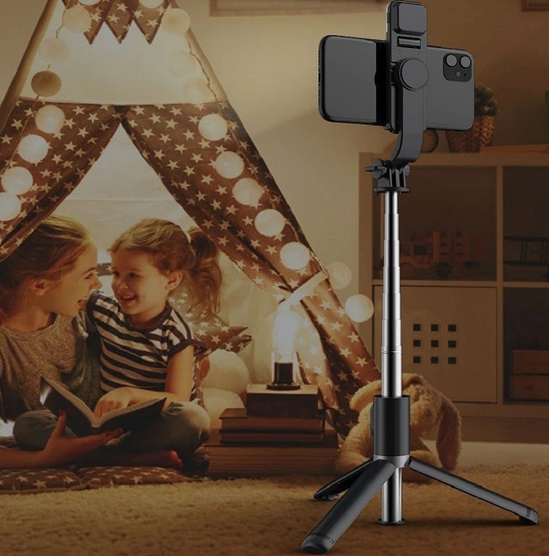 Μπορεί να διπλωθεί εύκολα για ευκολότερη μεταφορά. Στη συσκευασία περιλαμβάνεται φως για ποιοτικότερες λήψεις. Συμβατός με κινητά τηλέφωνα με λειτουργικό σύστημα iOS και Android. Επιπλέον περιλαμβάνει τηλεχειριστήριο με εμβέλεια έως 10 μέτρα.