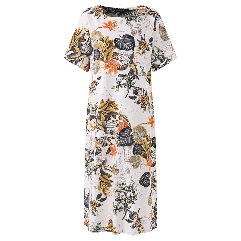Μακριά καλοκαιρινά γυναικεία φορέματα με έντονη εκτύπωση λουλουδιών.