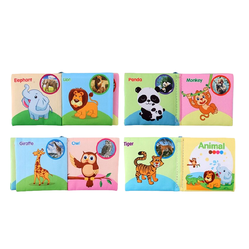 Το βαμβακερό βιβλίο αγγλικές λέξεις ζώα είναι ποιοτικό προϊόν με ιδανικό περιεχόμενο για μικρά παιδιά. Διαστάσεις 11 × 11 εκ. ενθαρρύνουν τα παιδικά χεράκια να εξερευνήσουν. Το βιβλίο θα απασχολήσει το παιδάκι σας και επιπλέον θα αναπτύξει τις αισθήσεις του.