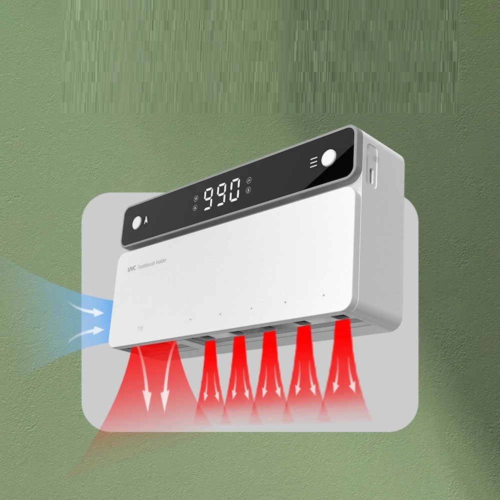 Βάση για οδοντόβουρτσες με στεγνωτήριο και UV αποστείρωση 4000mAh LED οθόνη Τοίχου επαναφορτιζόμενος αποστειρωτής μπάνιου