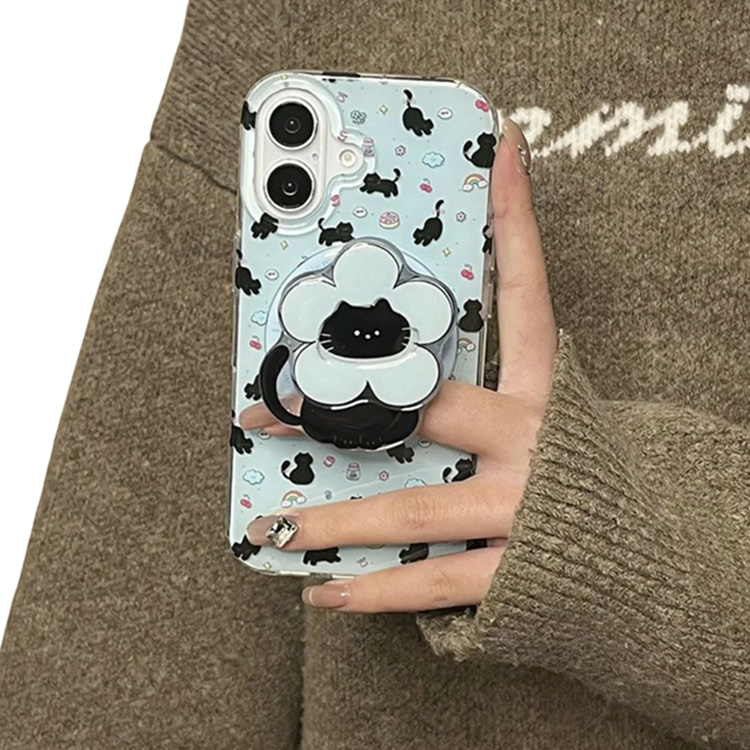 Βάση τηλεφώνου για iPhone 16 και Samsung Πλαστική βάση με σχέδιο γάτας με λουλούδι Στυλάτη βάση για το γραφείο