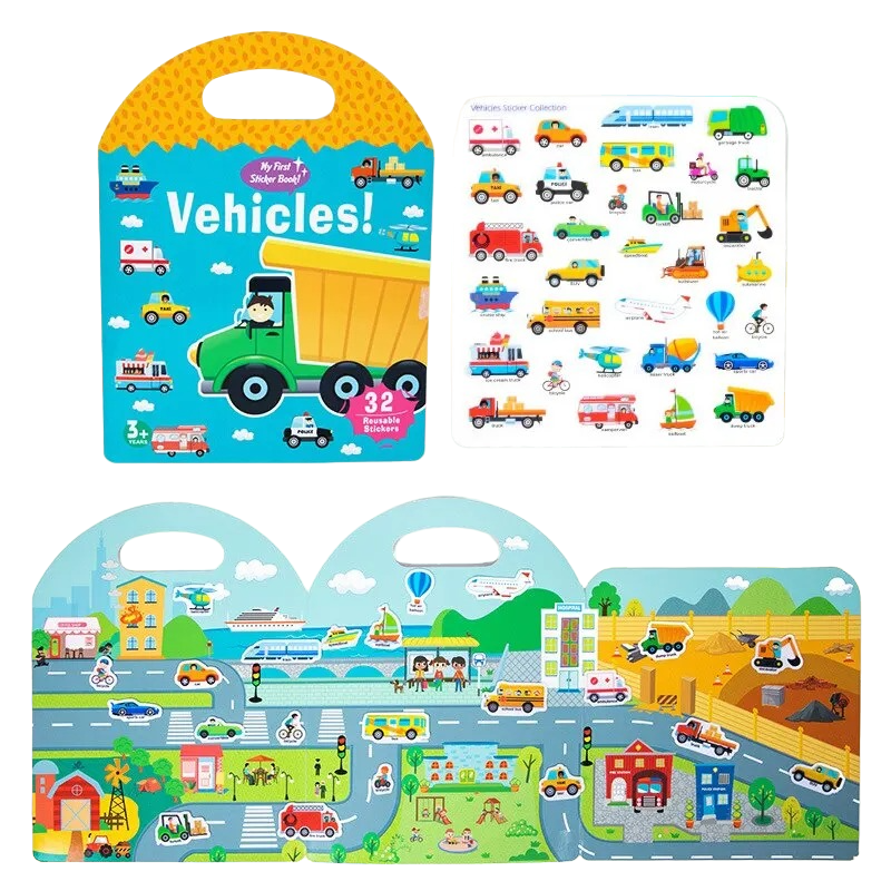 • Αυτοκόλλητα αυτοκινήτων: Το βιβλίο περιέχει αυτοκόλλητα με διάφορους τύπους αυτοκινήτων, συμπεριλαμβανομένων φορτηγών, πυροσβεστικών αυτοκινήτων, αγωνιστικών αυτοκινήτων και πολλά άλλα. Τα παιδιά μπορούν να διασκεδάζουν τοποθετώντας αυτά τα αυτοκόλλητα στα σωστά σημεία του βιβλίου.