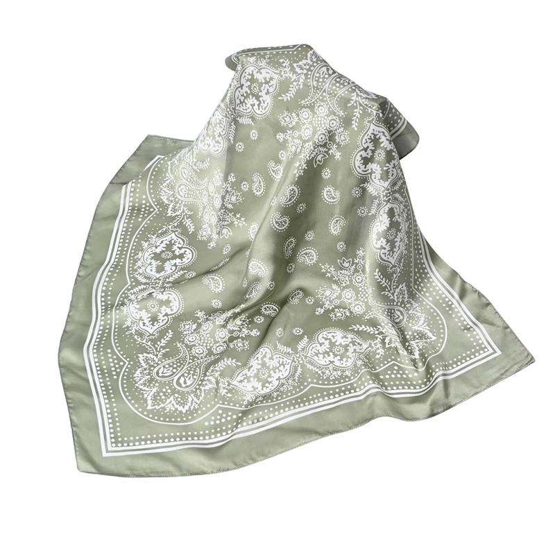 Boho κομψότητα σε ελαφριά και αέρινη εκδοχή. Αυτό το τετράγωνο μαντήλι διαστάσεων 70 x 70 εκ. έχει σχεδιαστεί ως ένα καθολικό αξεσουάρ για γυναίκες που θέλουν να προσθέσουν μια νότα κομψότητας και προσωπικού στυλ στην εμφάνισή τους. Χάρη στο υλικό με εφέ μεταξιού, φαίνεται πολυτελές, παραμένοντας ωστόσο άνετο και ευχάριστο στη χρήση. Το μαντήλι μπορεί να δεθεί ως μαντήλι για το κεφάλι, στυλάτη κορδέλα για τα μαλλιά ή ελαφρύ μαντήλι γύρω από τον λαιμό. Συμπληρώνει τέλεια καλοκαιρινά φορέματα, μπλούζες και απλά T-shirts.