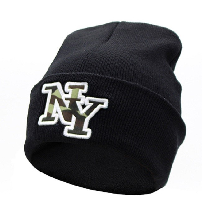 Χειμερινό μαύρο καπέλο με την επιγραφή NY