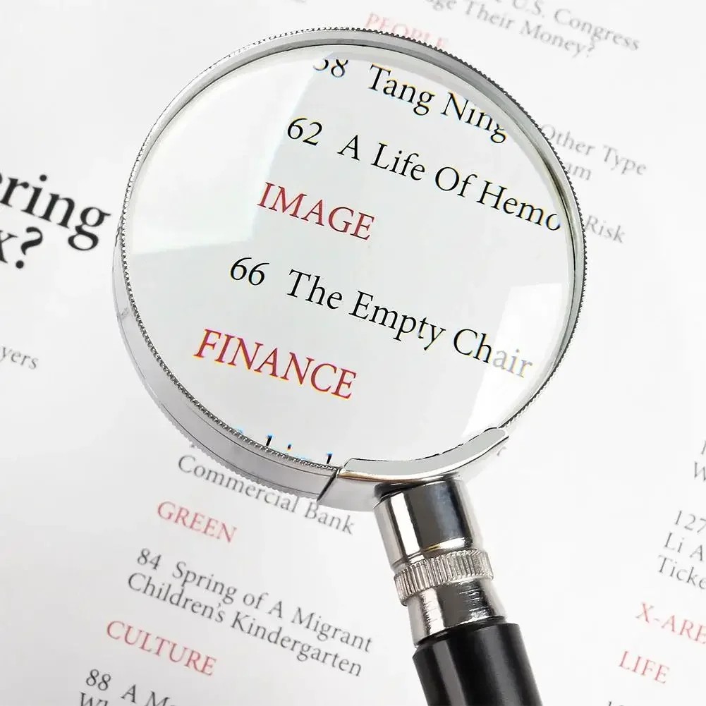 Χειροκίνητος μεγεθυντικός φακός 10x μεγέθυνση Διάμετρος 50 mm Μεταλλικό σώμα Γυάλινος φακός Ανάγνωση Χάρτες Κοσμήματα Γραμματόσημα Οικιακή Χρήση Γραφείο Ταξίδια