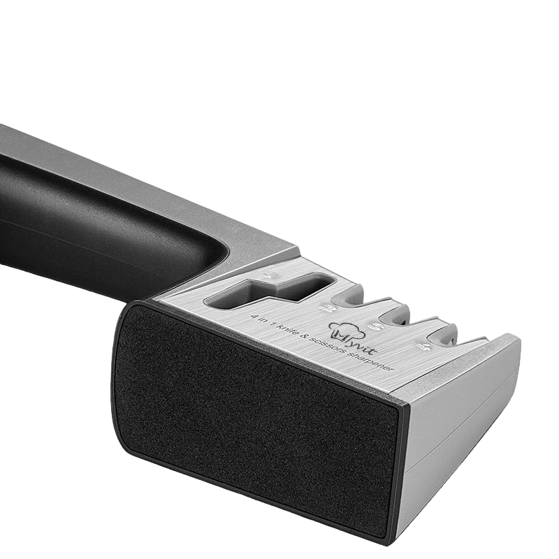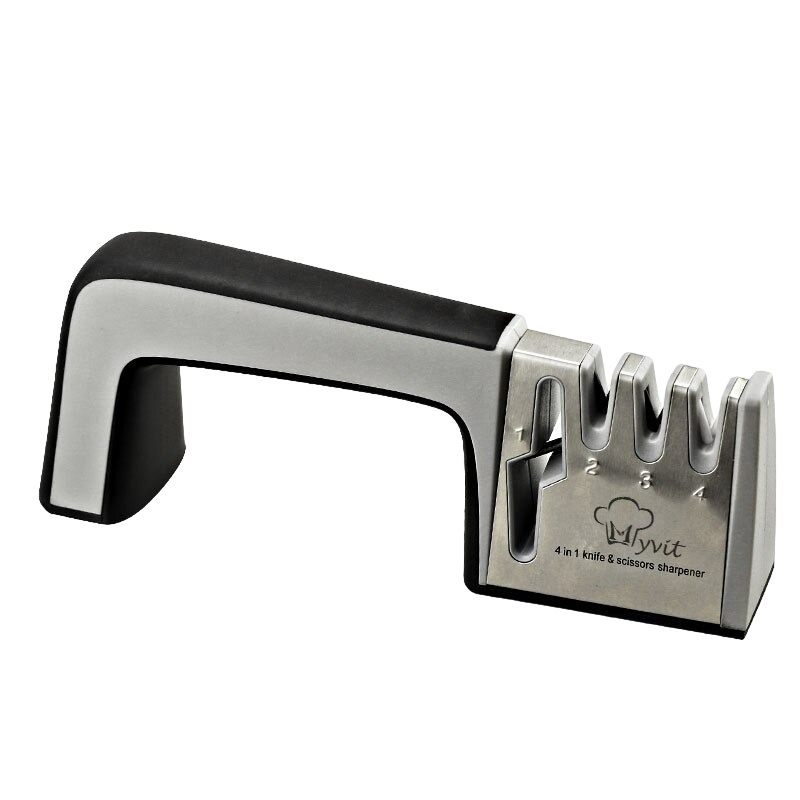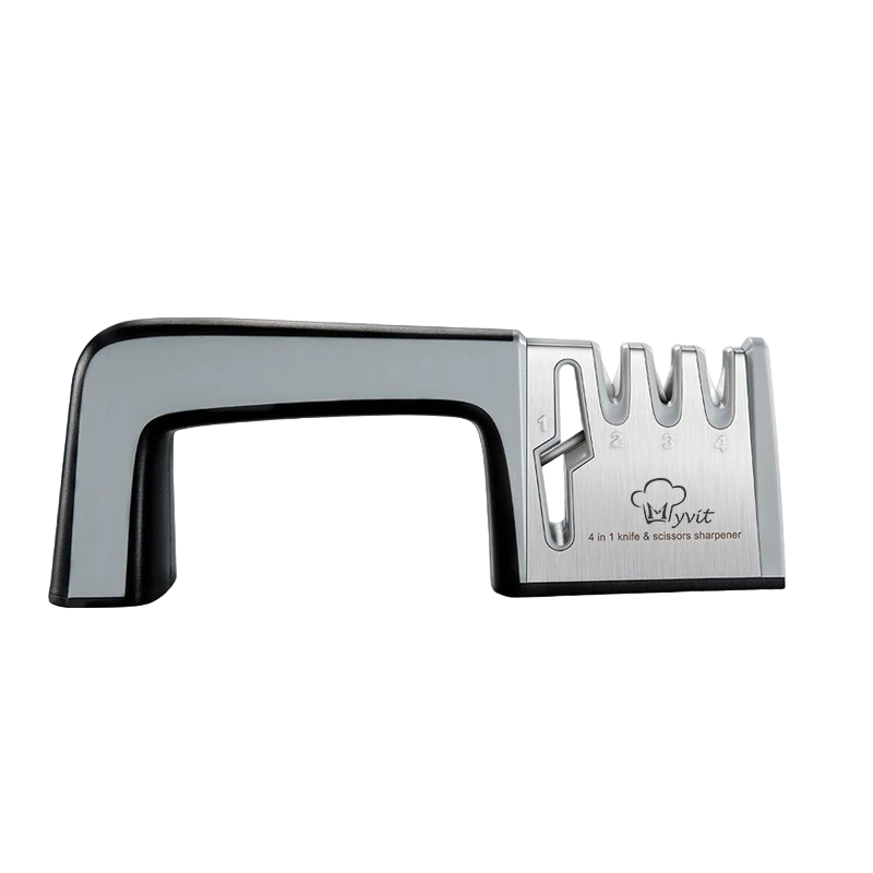 Με τον χειροκίνητο τροχό για μαχαίρια και ψαλίδια μπορείτε να διατηρείτε όλα τα μαχαίρια σας σε άριστη κατάσταση, χωρίς να χρειάζεται να τα πάτε σε επαγγελματική υπηρεσία τροχίσματος. Αντιολισθητική κατασκευή εξασφαλίζει ότι αυτός ο τροχός παραμένει σταθερός στη θέση του κατά τη χρήση, ενώ είναι πολύ εύκολος στον καθαρισμό. Είναι ένα απαραίτητο εργαλείο για κάθε οικιακό και επαγγελματία σεφ, που θέλει να διατηρεί τις λεπίδες του σε κορυφαία κατάσταση!