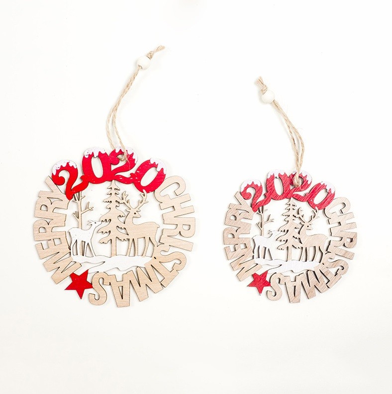Χριστουγεννιάτικη κρεμαστή διακόσμηση από ξύλο - μεγαλύτερη και μικρότερη επιγραφή Merry Christmas 2020.
