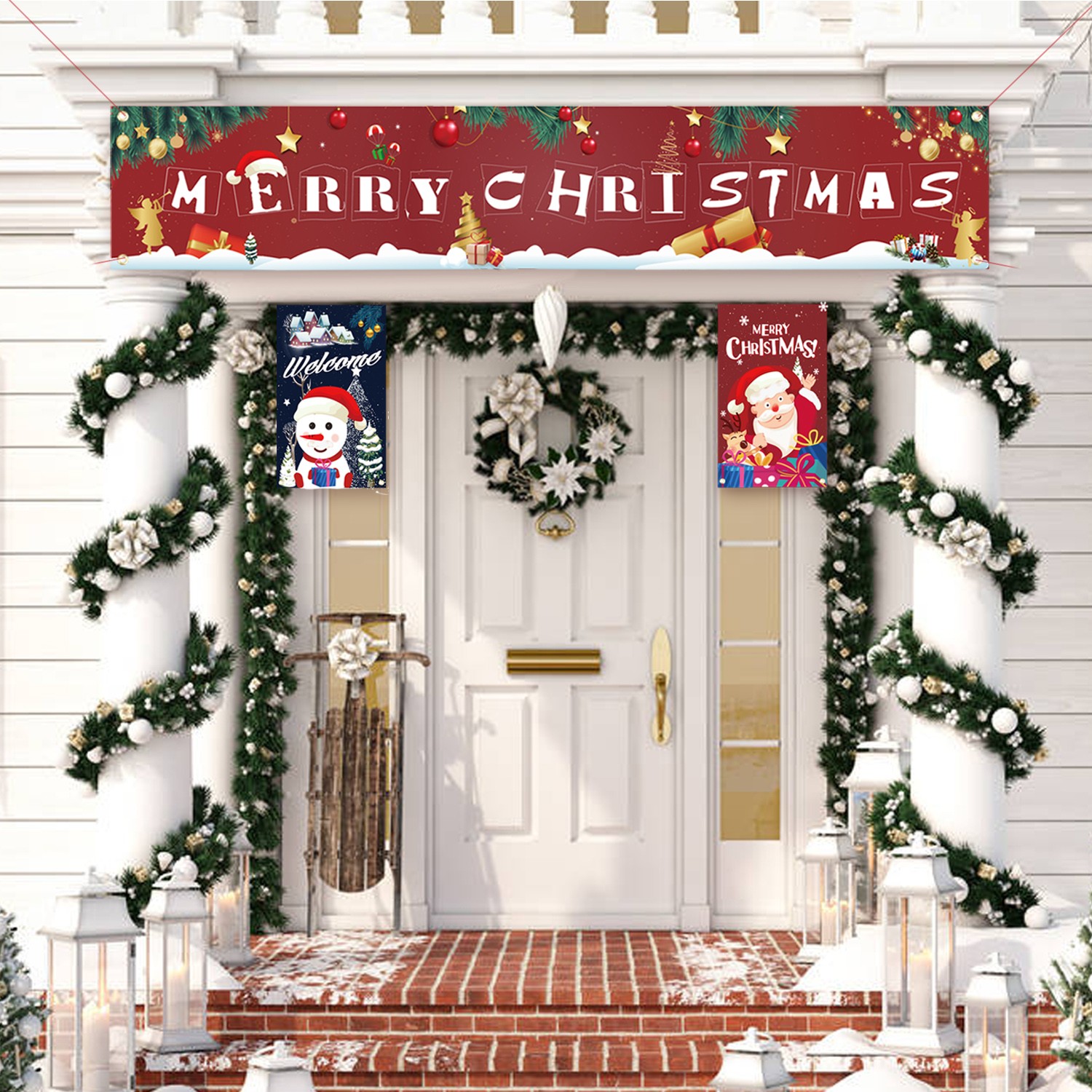 Μεγάλη χριστουγεννιάτικη εξωτερική διακόσμηση: 1x μπάνερ + 2x διπλής όψης σημαία.