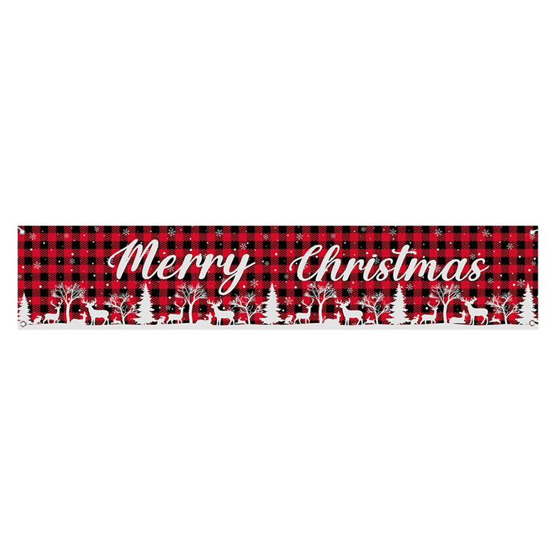 Χριστουγεννιάτικη εξωτερική σημαία 200 x 40 εκ. Κόκκινο-μαύρο καρό με ελάφια και δέντρα Ανθεκτική διακόσμηση με την επιγραφή Καλά Χριστούγεννα για την πρόσοψη και τον κήπο