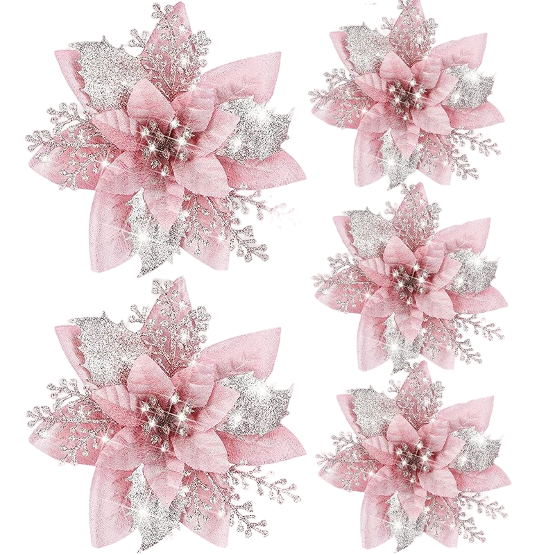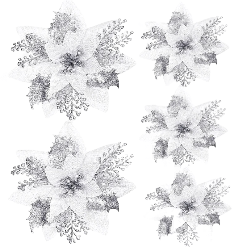 Χριστουγεννιάτικη λουλουδάτη διακόσμηση 5 τεμ