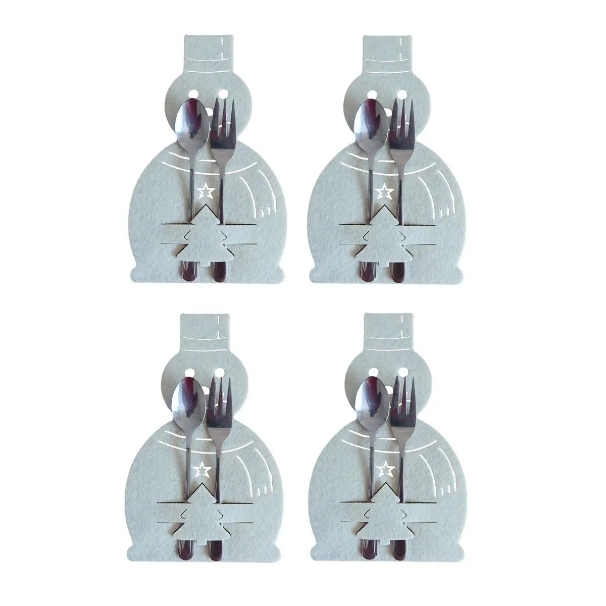 Χριστουγεννιάτικη θήκη για μαχαιροπίρουνα - χιονάνθρωπος 4 τμχ