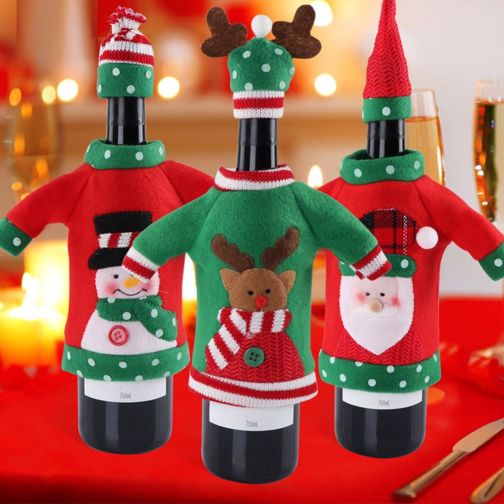 Αστεία χριστουγεννιάτικη δώρο θήκη για μπουκάλι - πουλόβερ και σκουφί.