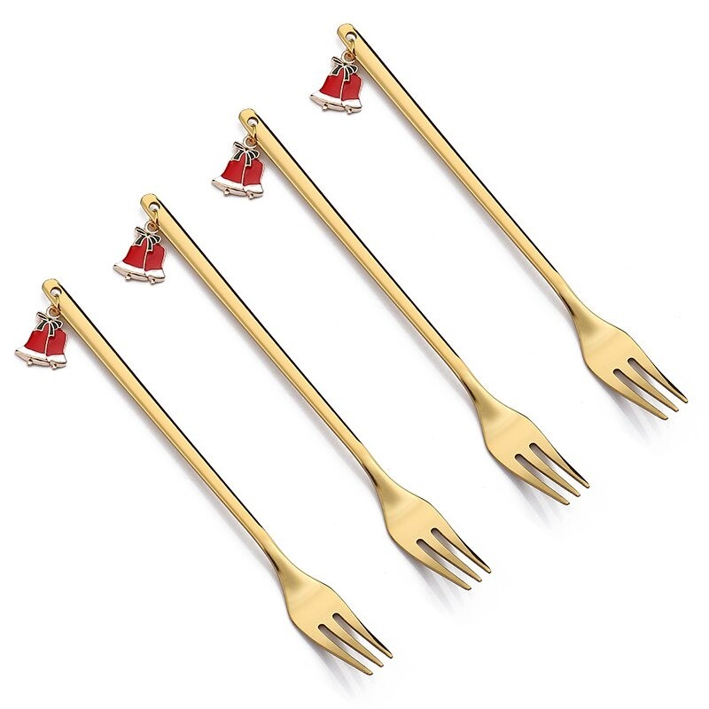 Οι χριστουγεννιάτικες πιρούνες με καμπάνες σίγουρα θα προσθέσουν μια γιορτινή ατμόσφαιρα σε κάθε κουζίνα. Κάθε πιρούνι είναι κατασκευασμένο από ποιοτικό ανοξείδωτο ατσάλι και διακοσμείται με ένα κρεμαστό με χριστουγεννιάτικο σχέδιο. Ιδανικό ως χριστουγεννιάτικο δώρο για τους αγαπημένους σας.