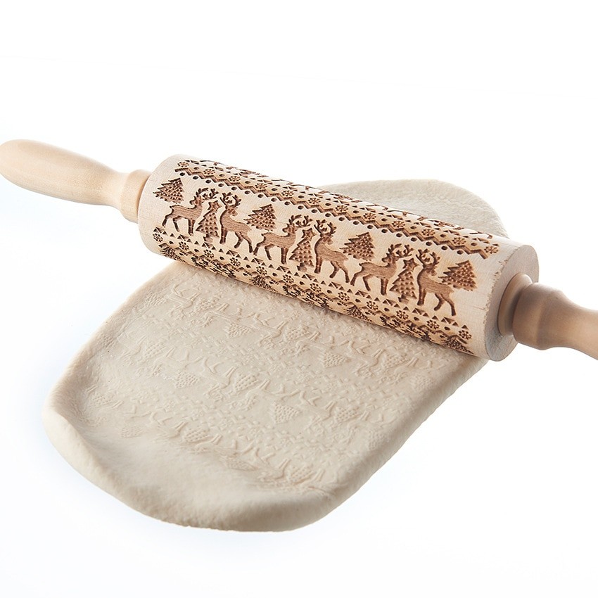 Ξύλινος κύλινδρος για ζύμωμα με όμορφα χριστουγεννιάτικα σχέδια - διάφοροι τύποι.