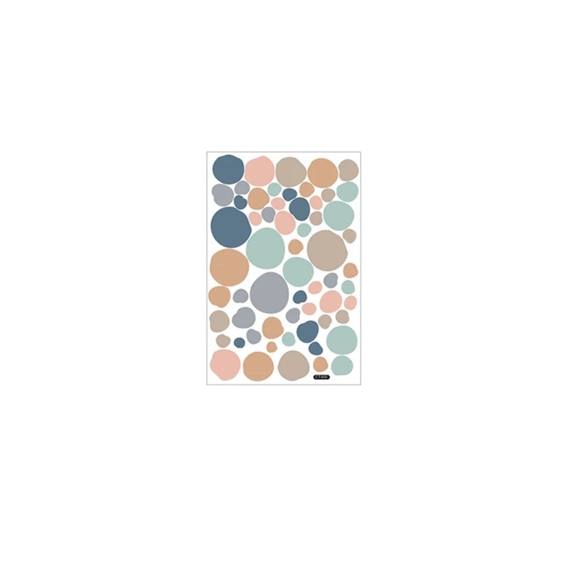 Διαφορετικά μεγέθη κουκίδων επιτρέπουν τον συνδυασμό λεπτομερειών με πιο έντονα στοιχεία και τη δημιουργία μιας μοντέρνας διακοσμητικής σύνθεσης. Τα αυτοκόλλητα είναι κατάλληλα για τοίχους, έπιπλα, πόρτες και άλλες λείες επιφάνειες. Το υλικό είναι ανθεκτικό στη συνηθισμένη φθορά και αν χρειαστεί, η διακόσμηση μπορεί να αφαιρεθεί προσεκτικά χωρίς σημαντική ζημιά στην επιφάνεια. Ιδανικά για παιδικό δωμάτιο, χώρο παιχνιδιού, σαλόνι ή ως αξεσουάρ σε θεματική διακόσμηση.