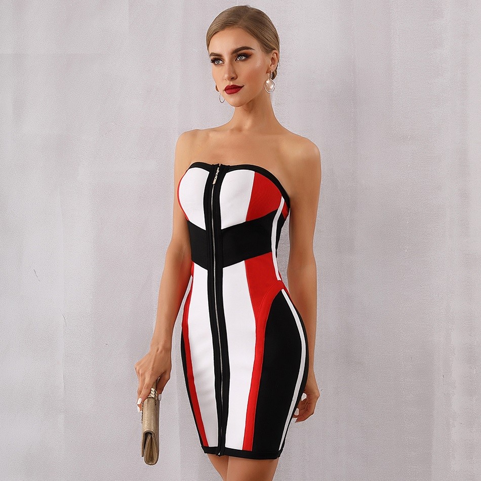 Ελκυστικά γυναικεία φορέματα χωρίς τιράντες με έντονο φερμουάρ.