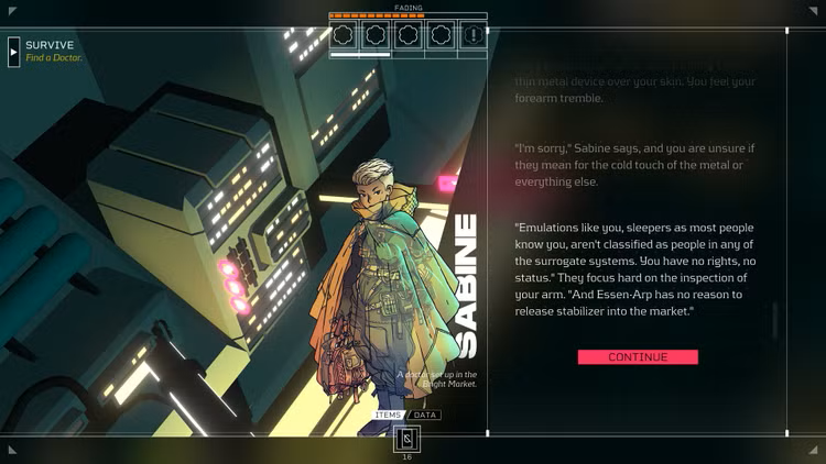 Το Citizen Sleeper από τον προγραμματιστή του παιχνιδιού In Other Waters και με εκπληκτική τέχνη χαρακτήρων του Guillauma Singelin είναι ένα επικό RPG που διαδραματίζεται στον Έρλιν's Eye, μια κατεστραμμένη διαστημική σταθμό που είναι το σπίτι χιλιάδων ανθρώπων που προσπαθούν να επιβιώσουν στην άκρη ενός μεσοαστρικού καπιταλιστικού συστήματος.