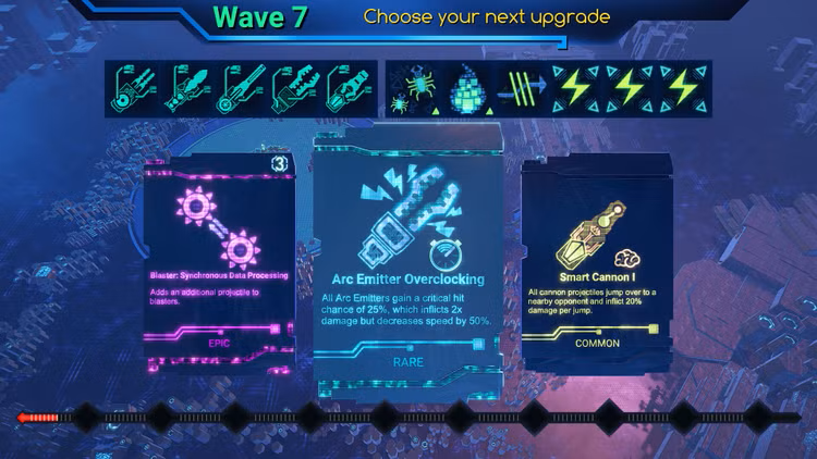 Έχετε τη δυνατότητα να επιλέξετε ό,τι χρειάζεστε για να αμυνθείτε αποτελεσματικά εναντίον του εχθρού. Θέλετε να προκαλέσετε σοβαρές ζημιές ή να προκαλέσετε ενοχλητικές καταστάσεις; Θέλετε να αναβαθμίσετε τα όπλα σας ή να αποκτήσετε ισχυρές ικανότητες; Σας περιμένουν περισσότερες από 170 διαφορετικές αναβαθμίσεις σε τέσσερα διαφορετικά επίπεδα σπανιότητας, έτοιμες να ξεκλειδώσετε και να ενσωματώσετε στο απόθεμά σας. Από την τυχαία επιλογή σε αυτό το απόθεμα, μπορείτε να επιλέξετε μια αναβάθμιση για κάθε κύμα εχθρών – έτσι καμία δύο παιχνίδια δεν θα είναι ποτέ τα ίδια!