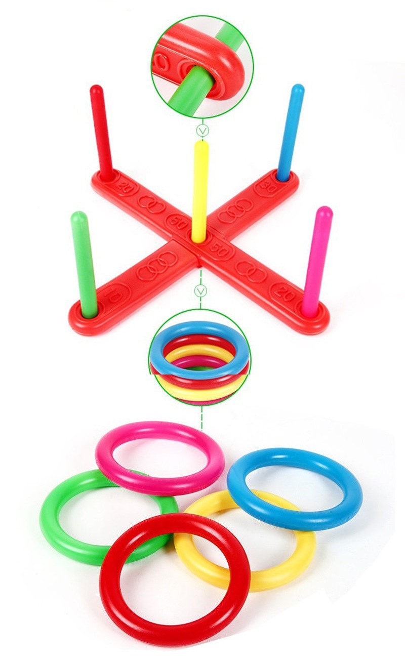 Διασταυρωμένο παιχνίδι με πολύχρωμα δαχτυλίδια, κατάλληλο για την εκπαίδευση στόχευσης και την ανάπτυξη της κινητικότητας.