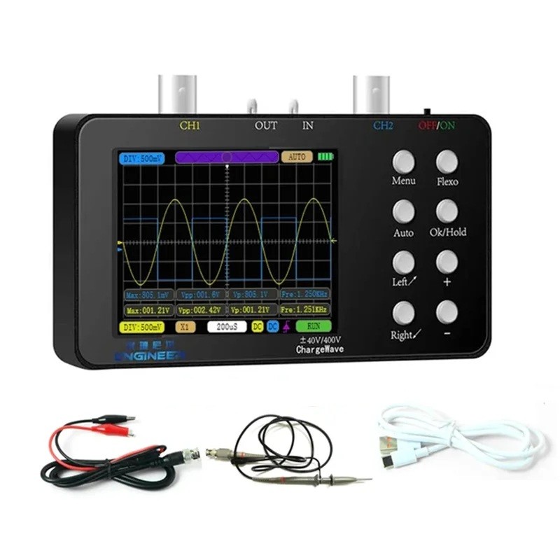 Αυτό το δι-channel φορητό ψηφιακό οσκοσκόπιο έχει σχεδιαστεί για ακριβείς μετρήσεις και επισκευές ηλεκτρονικών, είτε σε επαγγελματικά εργαστήρια είτε σε οικιακές συνθήκες. Η συσκευή προσφέρει πλάτος ζώνης 10 MHz ανά κανάλι και συχνότητα δειγματοληψίας 2,5KSa/s, εξασφαλίζοντας αξιόπιστα αποτελέσματα κατά τη δοκιμή μιας ευρείας γκάμας ηλεκτρονικών κυκλωμάτων. Χάρη στην οθόνη LCD 3,2" με ανάλυση 320 × 240, τα δεδομένα εμφανίζονται πάντα καθαρά και ευδιάκριτα. Η ενσωματωμένη μπαταρία 2500 mAh επιτρέπει 4,5–6 ώρες συνεχούς λειτουργίας, ιδανική για εργασία στο πεδίο και στο εργαστήριο. Χάρη στις συμπαγείς διαστάσεις και τον εύκολο χειρισμό, αυτό το οσκοσκόπιο θα γίνει αναπόσπαστο εργαλείο κάθε τεχνικού.