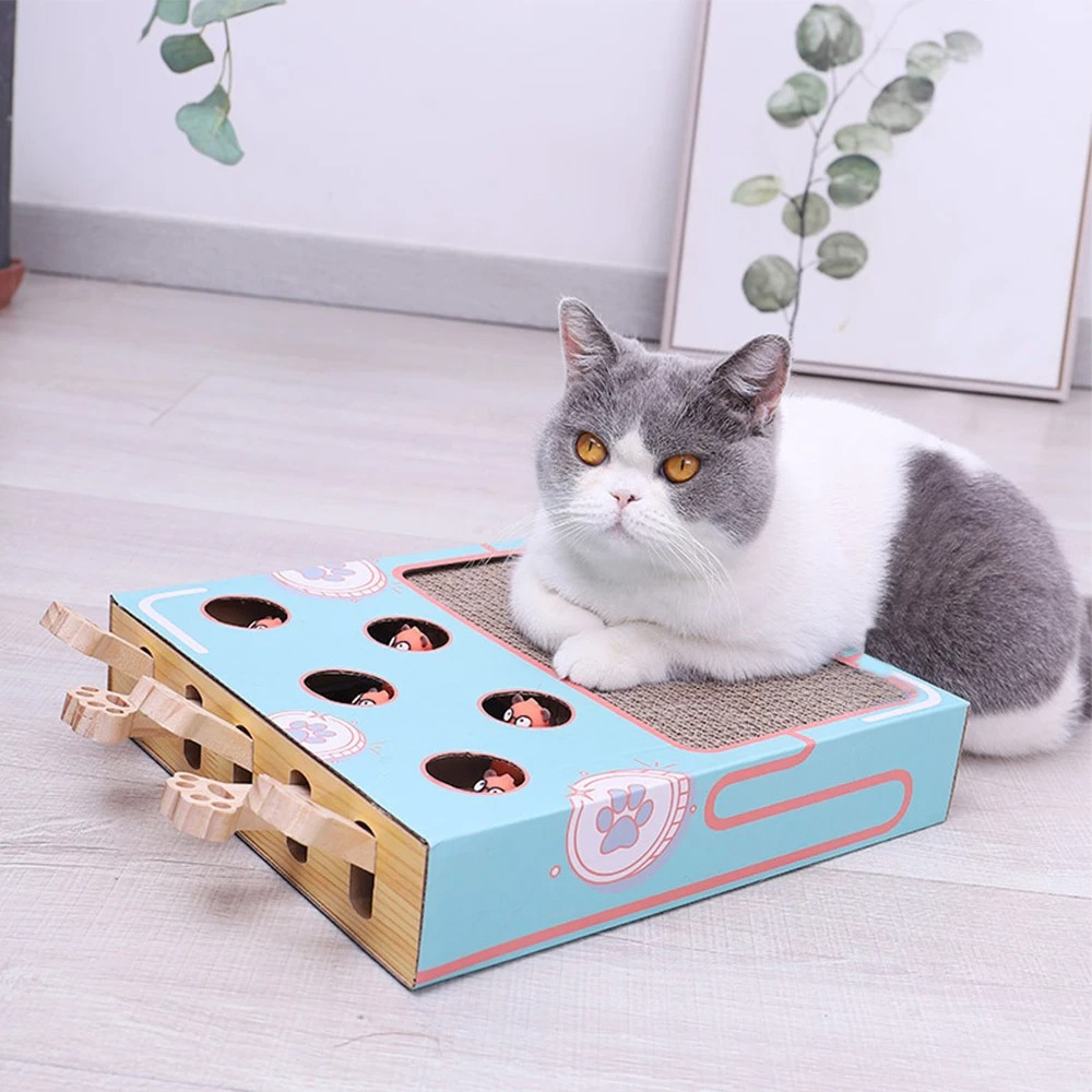 Αυτό το διαδραστικό παιχνίδι για γάτες 2 σε 1 συνδυάζει δύο αγαπημένες δραστηριότητες κάθε γάτας – ξύσιμο και κυνηγητό. Η βάση του παιχνιδιού αποτελείται από πλακέτα από ισχυρό κυματοειδές χαρτόνι, η οποία χρησιμεύει ως ξύστρα για την αποτρίχωση των νυχιών. Στο κέντρο του παιχνιδιού βρίσκεται το διασκεδαστικό παιχνίδι "Χτύπα τον τυφλοπόντικα", το οποίο όχι μόνο διασκεδάζει τη γάτα, αλλά την εμπλέκει και σε ενεργό κίνηση.