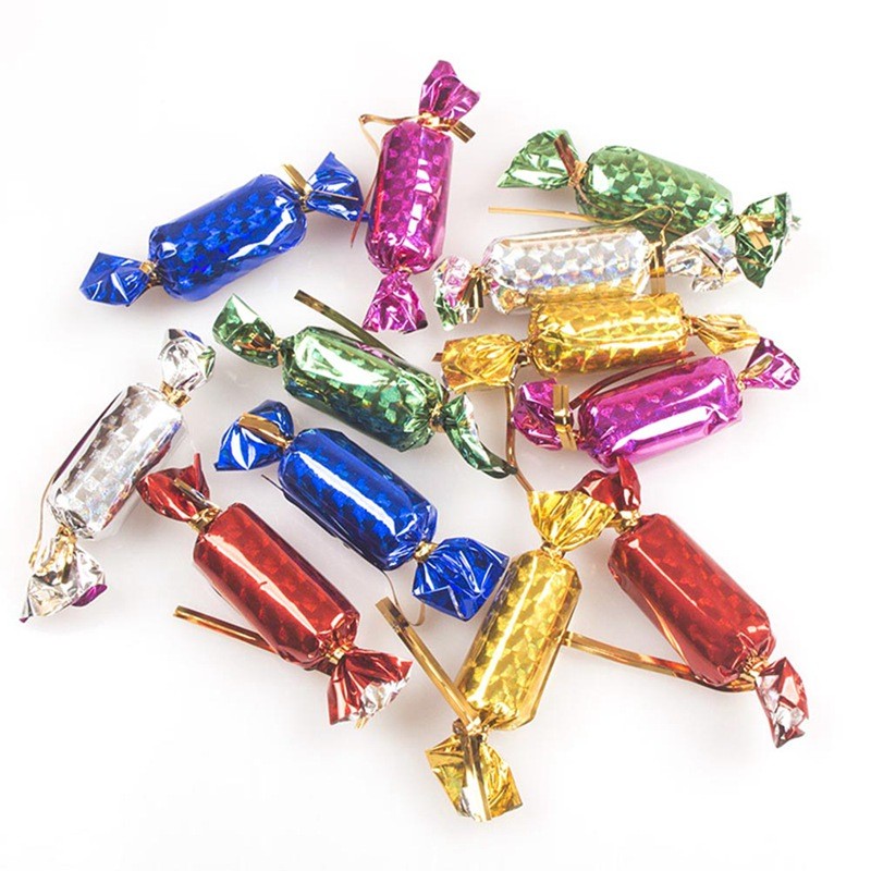 Συσκευασία χριστουγεννιάτικων κρεμαστών διακοσμητικών σε σχήμα καραμέλας.