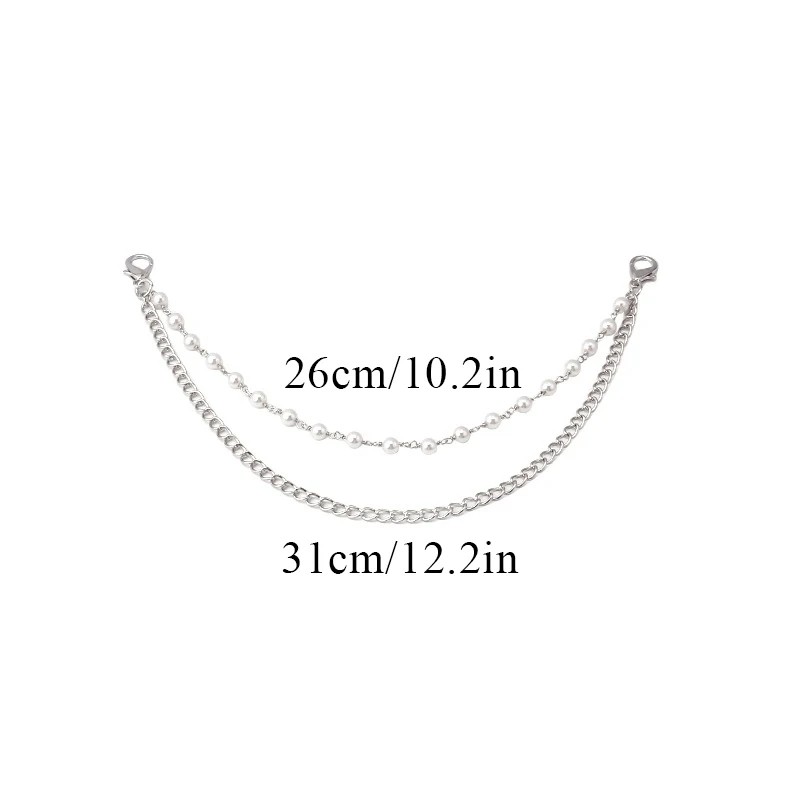 Η διπλή αλυσίδα μπορεί να αποτελέσει έναν απλό τρόπο για να προσαρμόσετε την εμφάνιση της τσάντας χωρίς την ανάγκη αλλαγής ολόκληρης της ζώνης. Ο συνδυασμός δύο αλυσίδων διαφορετικών μηκών δημιουργεί έναν πιο έντονο διακοσμητικό εφέ. Το ασημένιο χρώμα του αξεσουάρ μπορεί να ταιριάζει καλά με διάφορους στυλ τσαντών. Χάρη στις καραμπίνες και στα δύο άκρα, η αλυσίδα μπορεί να προσαρτηθεί εύκολα και αν χρειαστεί, να αφαιρεθεί γρήγορα.