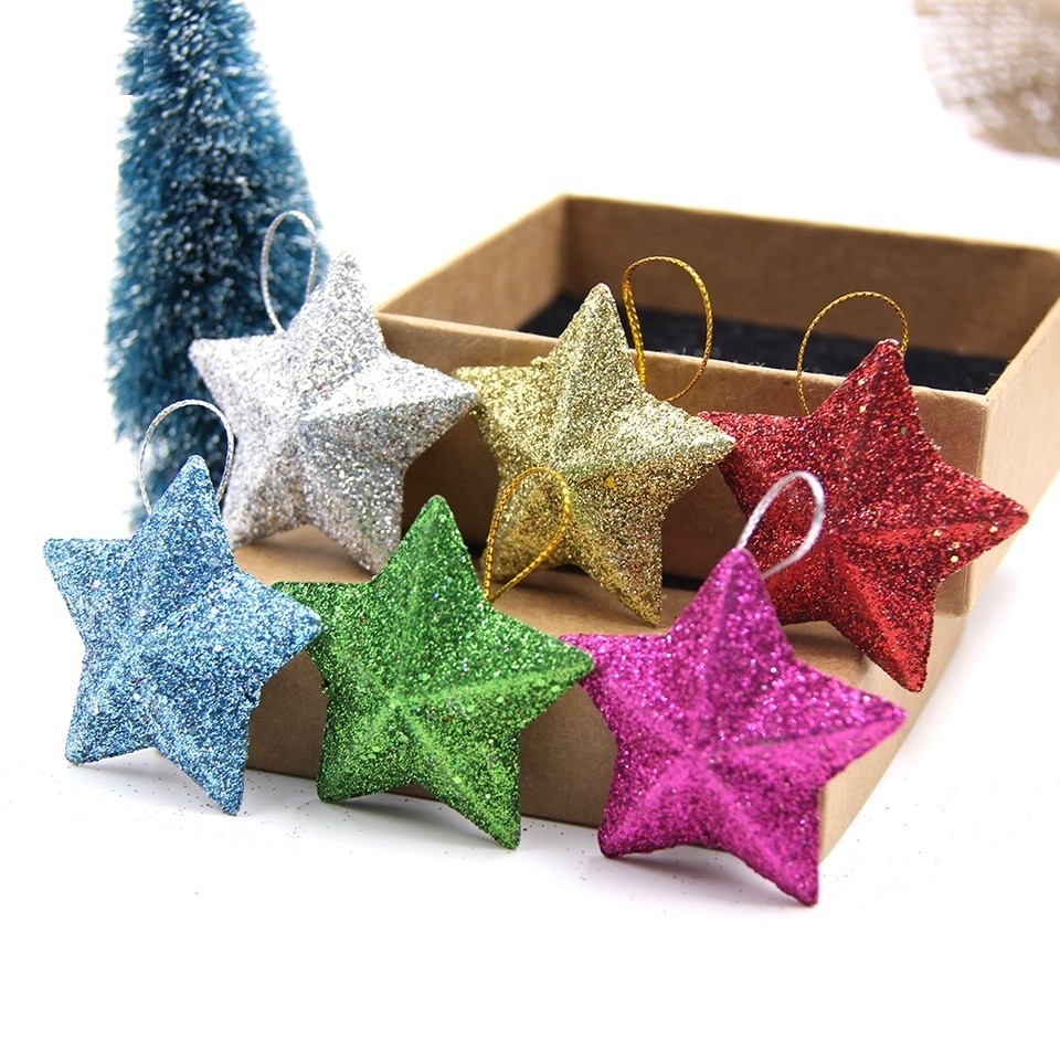 Συσκευασία διακοσμητικών πολύχρωμων χριστουγεννιάτικων αστεριών με πούλιες.