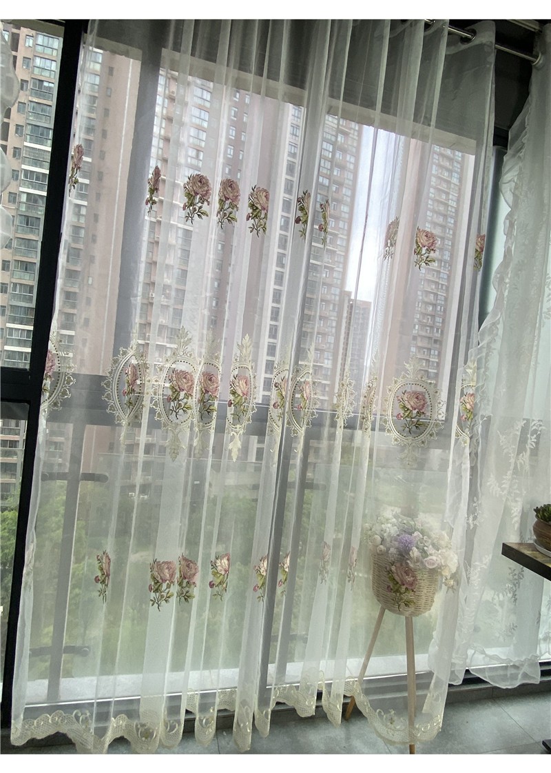 • Κομψό κέντημα τριαντάφυλλων: Λεπτομερές λουλουδάτο σχέδιο προσθέτει στην κουρτίνα ρομαντική και πολυτελή εμφάνιση.