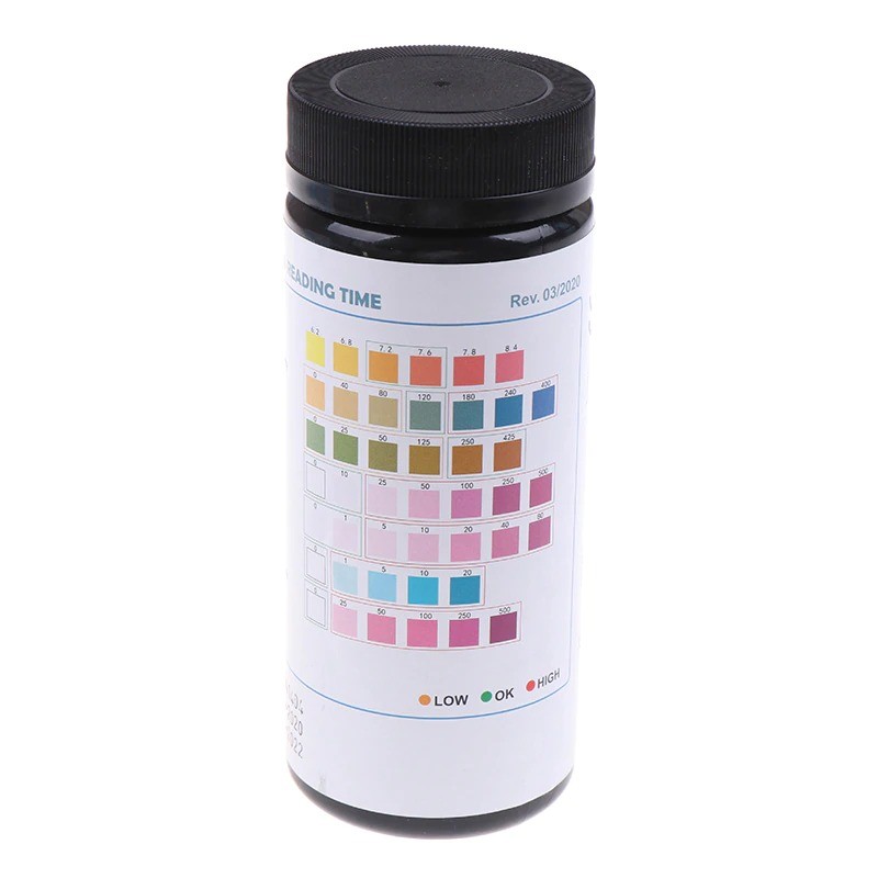 Οι δοκιμές παρακολουθούν 7 ιδιότητες του νερού ενυδρείου: pH, σκληρότητα ανθρακικών, γενική σκληρότητα, νιτρώδη, νιτρικά, βρώμιο, χλώριο.