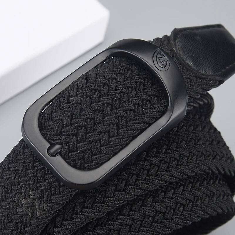 Ελαστική τσόχα unisex 3,3 cm Μαύρη υφασμάτινη ζώνη με μεταλλική αγκράφα Ελαστικό μοντέρνο αξεσουάρ για τζιν, παντελόνια και σορτς